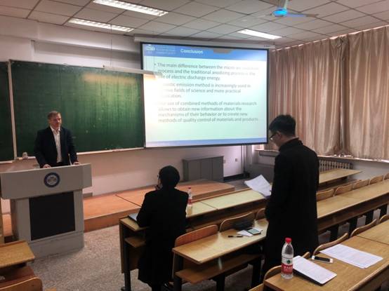 俄罗斯专家们分别做了”声发射技术在钛合金疲劳损伤的应用”、“声发射在聚合物复合材料中的应用”和“声发射在涂层和薄膜中的应用”学术报告,PA官网相关专业师生450余人次聆听了学术报告,报告结束后,俄方专家与现场师生围绕报告内容进行了深入的交流讨论。