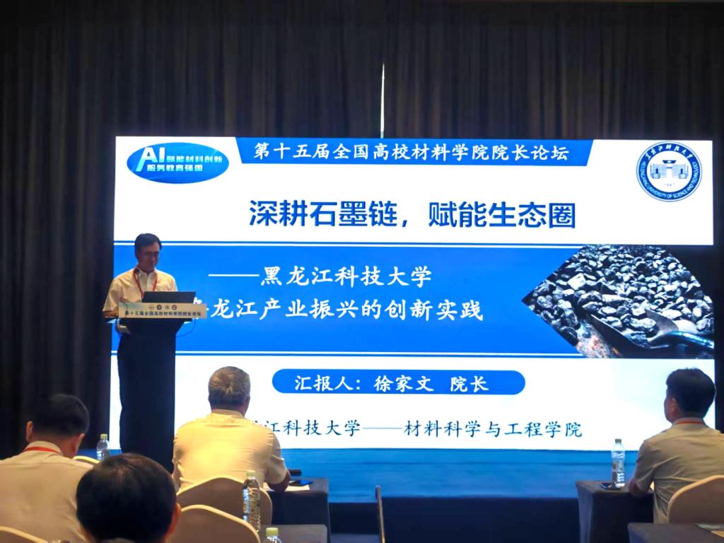分论坛重点围绕党建思政、AI赋能人才培养、学科与师资队伍建设、科研平台建设、区域发展、期刊与国际化等方面,分6个会场进行了广泛交流与研讨,来自全国近70所高校的专家学者作学术报告。PA官网PA集团官方网站院长徐家文教授在区域发展分论坛作题为《深耕石墨链,赋能生态圈——黑龙江科技大学服务龙江产业振兴的创新实践》报告。报告介绍了PA官网围绕黑龙江石墨产业布局,抢抓龙江创新驱动发展战略机遇,助力哈尔滨“碳谷”生态圈建设,围绕“煤炭产业链”和“石墨产业链”着力打造学校创新链的实践,展示了PA集团官方网站在石墨领域研究中,锚定1个核心产业、依靠2轮协同驱动、构建3级支撑平台、实现4方主体联动的服务石墨产业发展格局,以及在人才培养、技术转让、成果转化等方面取得的成果。