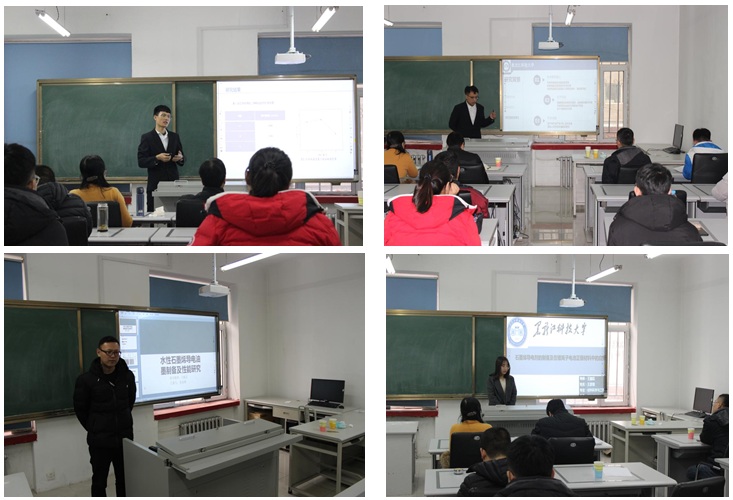 分论坛活动开展过程中,2019年研究生学术论坛论文集收录文章作者做学术汇报。朱志众等四名同学汇报题目为《石墨烯复合固相热界面材料的制备与表征测试》等四项学术成果。嘉宾教师对汇报内容给予了充分肯定并提出诸多有针对性的意见与建议,同时与在场研究生进行广泛深入交流。四位同学均分享了自己理论学习和科研工作过程中的经验及心得:第一要有扎实的理论基础,养成阅读文献的好习惯;第二要不怕失败,屡败屡战;第三要着重培养科研创新意识和务实工作的思维与态度。