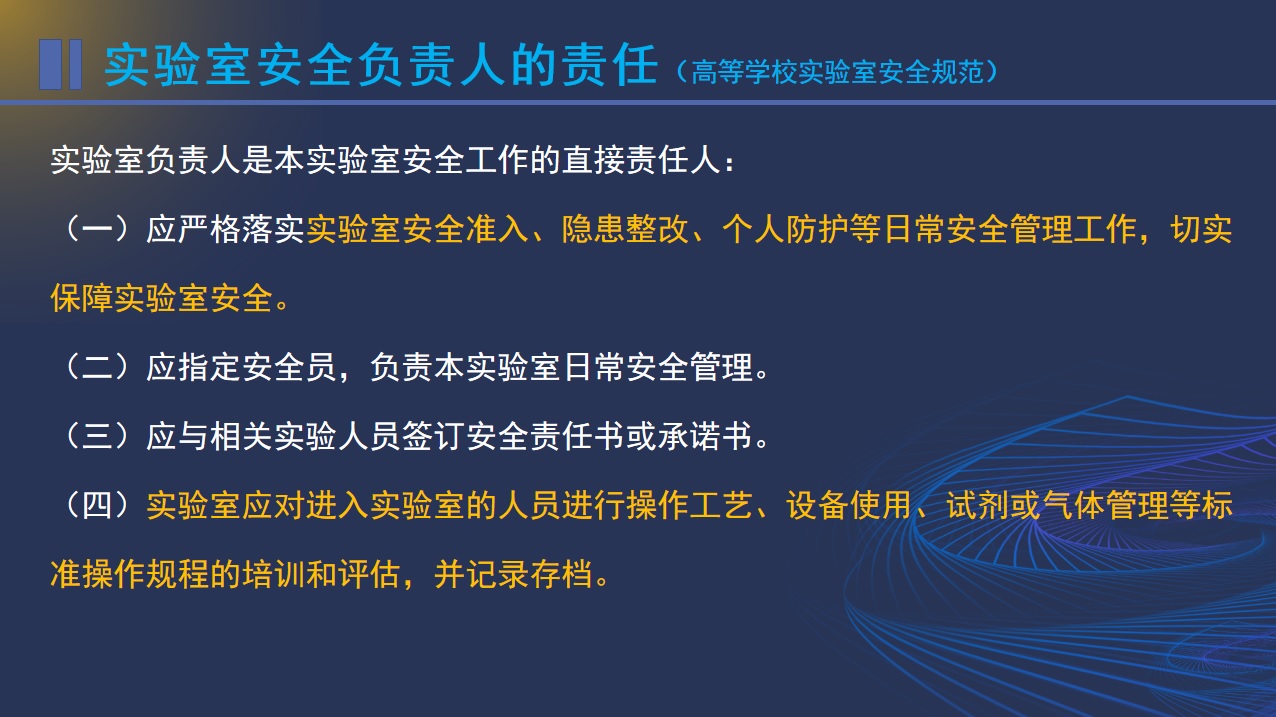 学校一直高度重视科研实验室安全的宣传、教育和管理工作,始终坚持“安全第一、预防为主、综合治理”的方针,实现规范化、常态化管理体制,重点落实安全责任体系、管理制度、教育培训、安全准入、条件保障,以及危险化学品等危险源的安全管理内容。通过此次培训提高了实验室管理人员及相关责任人的安全防范和责任意识,为PA官网规范实验室安全管理,筑牢安全防线,起到了积极的推动与促进作用。
