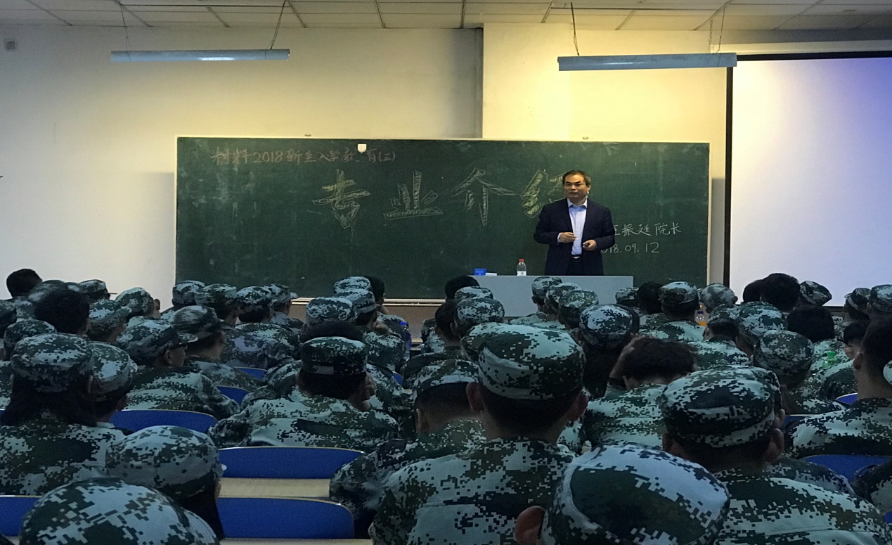9月12日晚上,PA官网院长王振廷教授为新生开展了入学教育系列活动之专业介绍。会上,王院长向大家介绍了我院所设四个专业的师资力量、专业特色、发展前景,结合贴近生活的实例,使学生们对于专业有了更加深刻的理解,最后,王院长号召大家:“选材料,学材料,爱材料,成材料”。